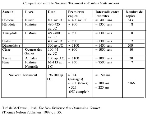 Tout ceci montre que la transmission du texte original jusqu’à nous est plus que satisfaisante. Les faits relatés par le Nouveau Testament sont historiques, rapportés également par des auteurs non chrétiens de l’époque et donc mieux établis que beaucoup d’autres événements de l’Antiquité.