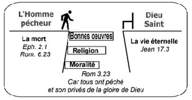 L’Ecriture enseigne aussi qu’aucune sorte de bonté humaine, d’œuvre humaine, de moralité humaine, ou d’activité religieuse ne peut se gagner la faveur de Dieu et emmener quiconque au Ciel. L’homme moral, l’homme religieux, et l’homme immoral et irréligieux, tous sont dans le même bateau. Ils sont tous privés de la parfaite droiture de Dieu. Après avoir débattu de l’homme immoral, de l’homme moral, et de l’homme religieux dans Romains 1.18-33.8, l’Apôtre Paul déclare que Juifs et Grecs tombent sous l’empire du péché, car « Il n’y a point de juste, pas même un seul » (Rom. 3.9-10). A cela, s’ajoutent les affirmations des versets de l’Ecriture suivants :